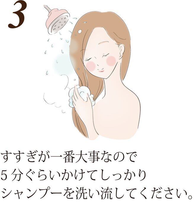 頭皮や髪の汚れはお湯だけで80%~90%取れるので、髪や頭皮に優しいシャンプーで洗いながら、必要な皮脂を残すだけでツヤツヤ、サラサラのまとまる髪になります。