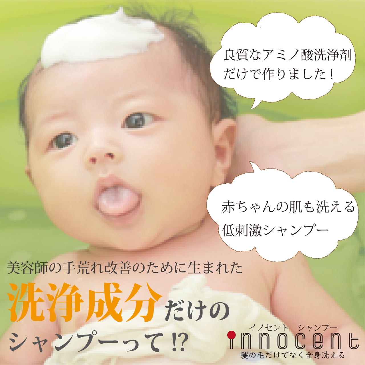 赤ちゃんも使え、アトピーの方にも安心して使える『イノセントシャンプー』は、頭だけではなく、体全体を洗うことができます。